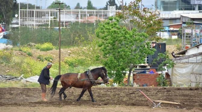 İZMİR'in Balçova İlçes'inde yaklaşık 1 dönümlük arazisini atla sürerek ekime hazırlayan çiftçiyi, görenler şaşırıyor. İzmir'de moleküler biyoloji, genetik, tıp, eczacılık, biyo-mühendislik ve bilgisayar mühendisliği gibi pek çok bilim alanında özel çalışmaların yapıldığı Dokuz Eylül Üniversitesi İzmir Biyotıp ve Genom Merkezi'nin (İBG) önündeki atlı sabanlı bu görüntü, gelişen teknolojiye rağmen kullanılan yoğun emekteki tezatlığı gözler önüne serdi.