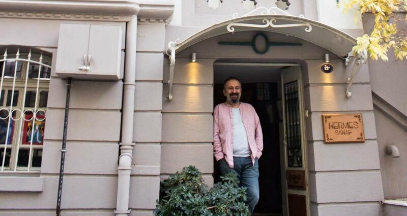 İzmir'de Hermes Sahaf mağazasının sahibi Ümit Nar, işyerinin ismi sebebiyle ilginç bir davayla karşı karşıya kaldı.