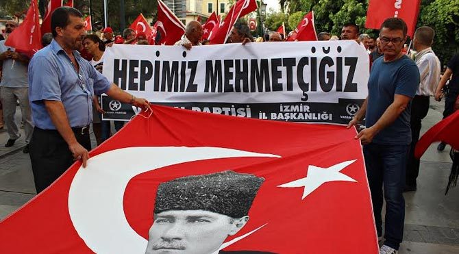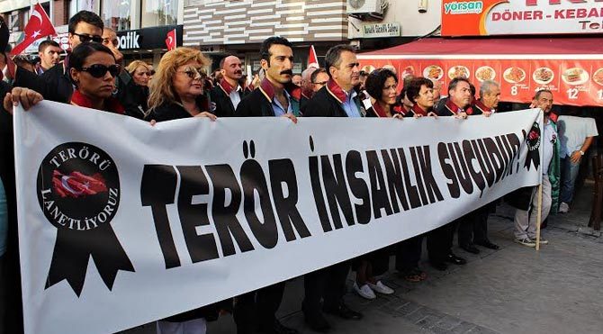 İzmir Barosu başta olmak üzere çok sayıdaki sivil toplum kuruluşu temsilcisi Alsancak'taki Kıbrsı Şehitleri Caddesi'nde toplandı. Ellerinde Türk bayrakları ve Atatürk posterleri ile protesto yürüyüşü yapan vatandaşlar, askere destek veren, terörü lanetleyen pankartlar taşıdı. Vatandaşlar yürüyüş esnasında "Katil PKK, işbirlikçi AKP", "Şehitler ölmez, vatan bölünmez", "Hepimiz Mehmediz, PKK'ya yeteriz" ve "Mustafa Kemal'in askerleriyiz" sloganları attı.
