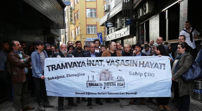 Kocaeli Büyükşehir Belediyesi Emlak ve İstimlak Dairesi Başkanlığı Kamulaştırma Şube Müdürlüğü'nce tespit edilen ve tramvay hattı boyunca yapılacak kamulaştırma kapsamında yıkılacak olan 40 barın işletmecisi,  'Barlar Sokağı' olarak bilinen Şahabettin Bilgisu Caddesi'ne masaları çıkartıp limonata dağıtarak eylem yaptı. Eyleme CHP Kocaeli Milletvekili Haydar Akar, Kocaeli Eğlence Yerleri Yatırımcıları Derneği Başkanı Yusuf Ziya Tom, bar işletmecileri ve vatandaşlar katıldı. Protestoda "Tramvaya inat, yaşasın hayat" yazılı pankart açıldı. Yusuf Ziya Tom, belediyenin tramvay projesini barların bulunduğu hattan geçirmesini ve kendilerine yer göstermemesine tepki gösterdi.