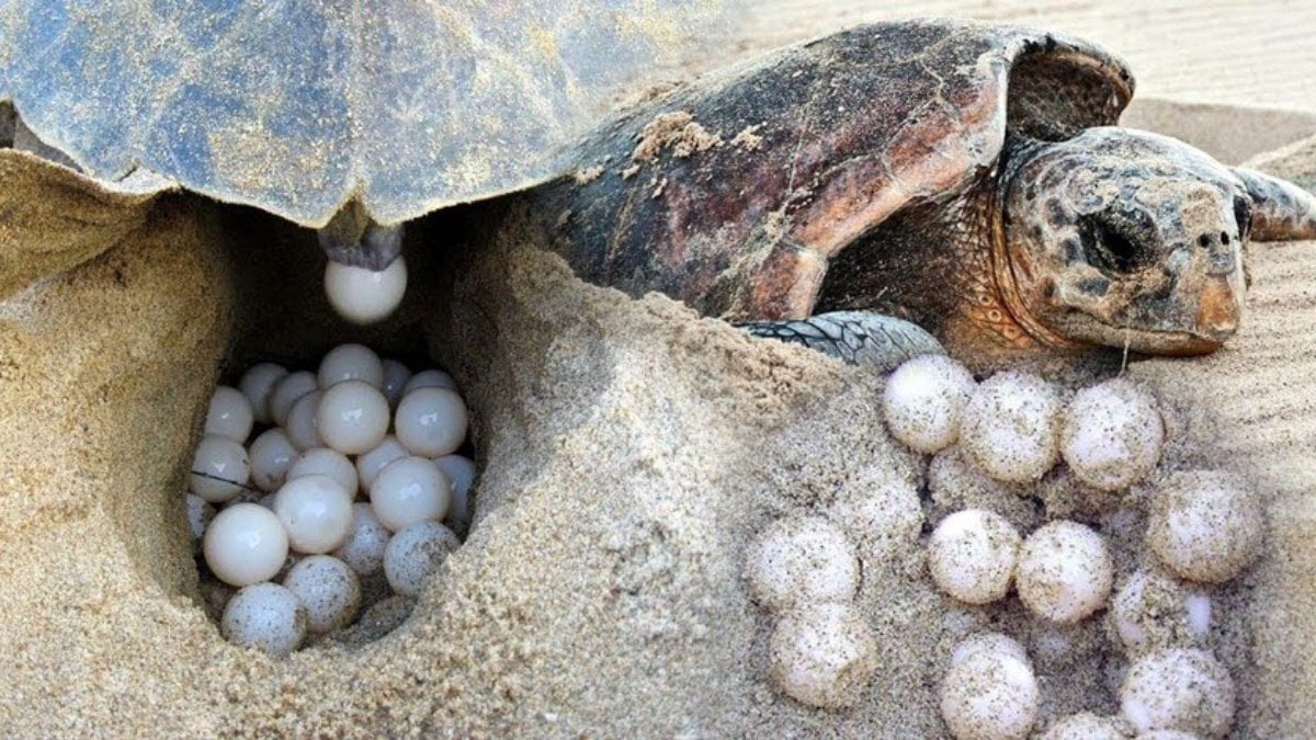 Kuluçka dönemlerini tamamlayarak kabuklarından kurtulan yavrular, kumu kazarak yüzeye çıkıyor.