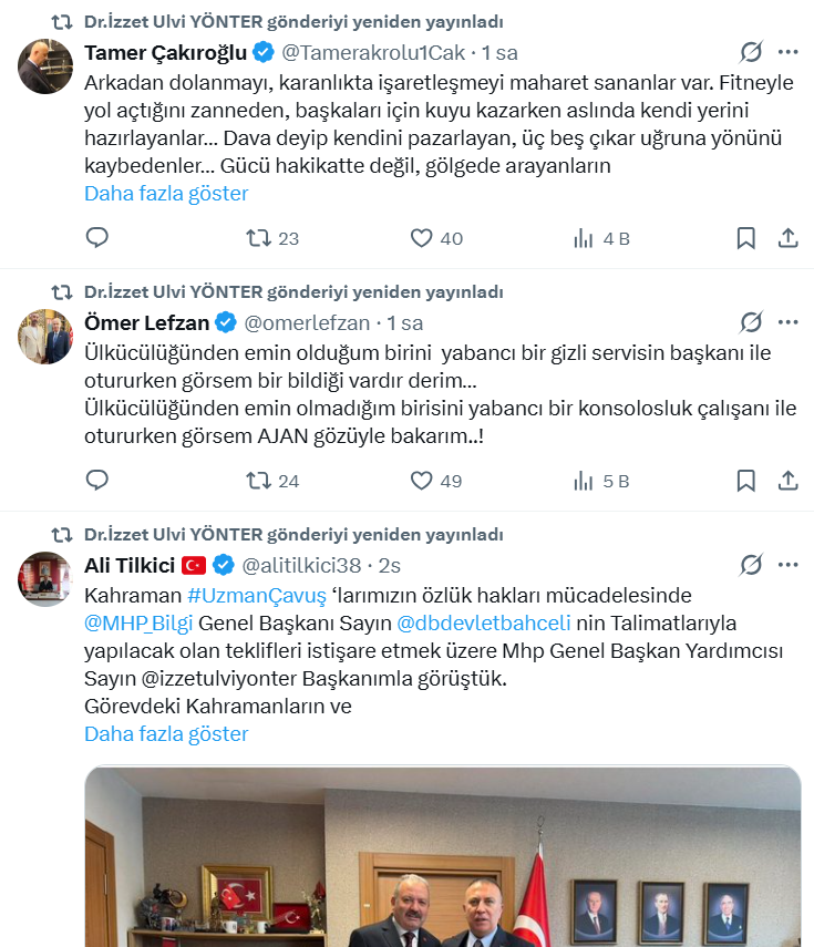 Söz konusu paylaşımın ardından Yönter’in bazı MHP’li isimlerin paylaşımlarını da yeniden gönderi olarak paylaşması dikkat çekti.