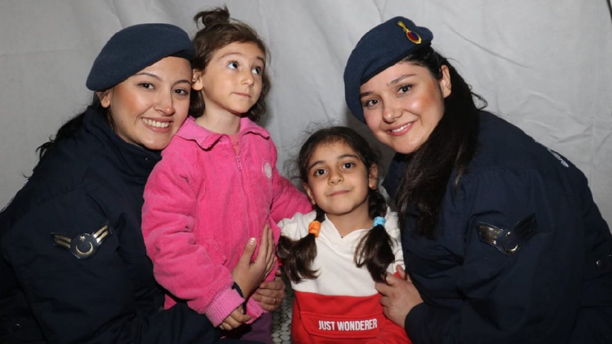 Ailesiyle çadırda kalan 7 yaşındaki Zehra Ela Şahin'in doğum günü olduğunu öğrenen kadın jandarma personeli, kız çocuğu için hazırlık yaptı.