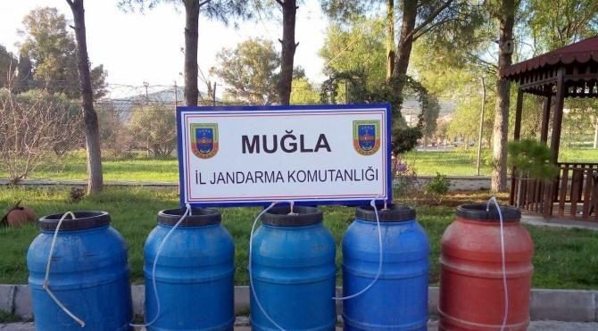 MUĞLA'daki bir eve operasyon yapan jandarma, ahırda oluşturulan bölümde kaçak içki üretimi yapıldığını belirledi. Operasyonda 830 litre sahte rakı ele geçirilirken, 3 kişi gözaltına alındı.