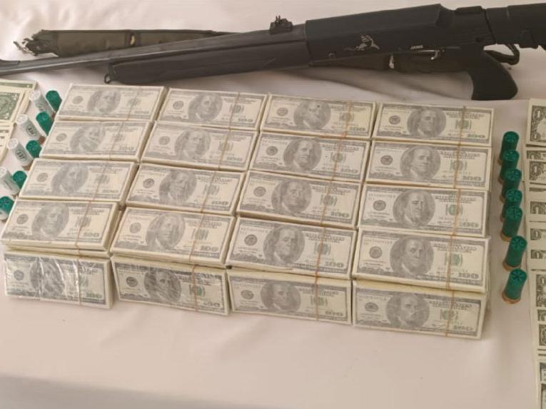 Sahte dolar, av tüfeği ve 10 fişek ele geçirilen araçtaki 3 kişi gözaltına alındı.