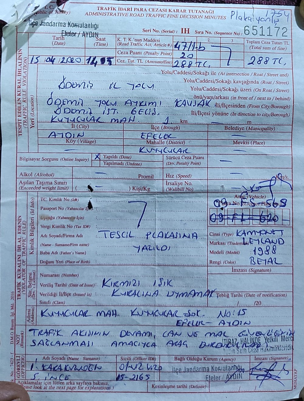Foto: SÖZCÜ / Plaka numarası değiştirilen ceza tutanağı