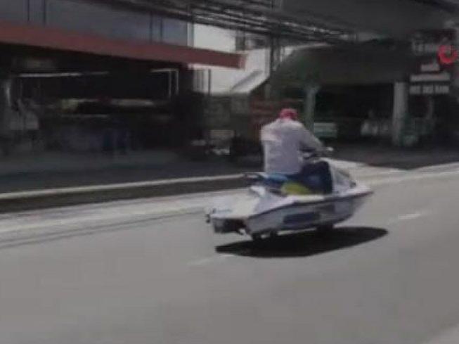 Tayland’da tekerlek taktığı jet ski ile otobanda seyahat eden adam görenleri şaşırttı.