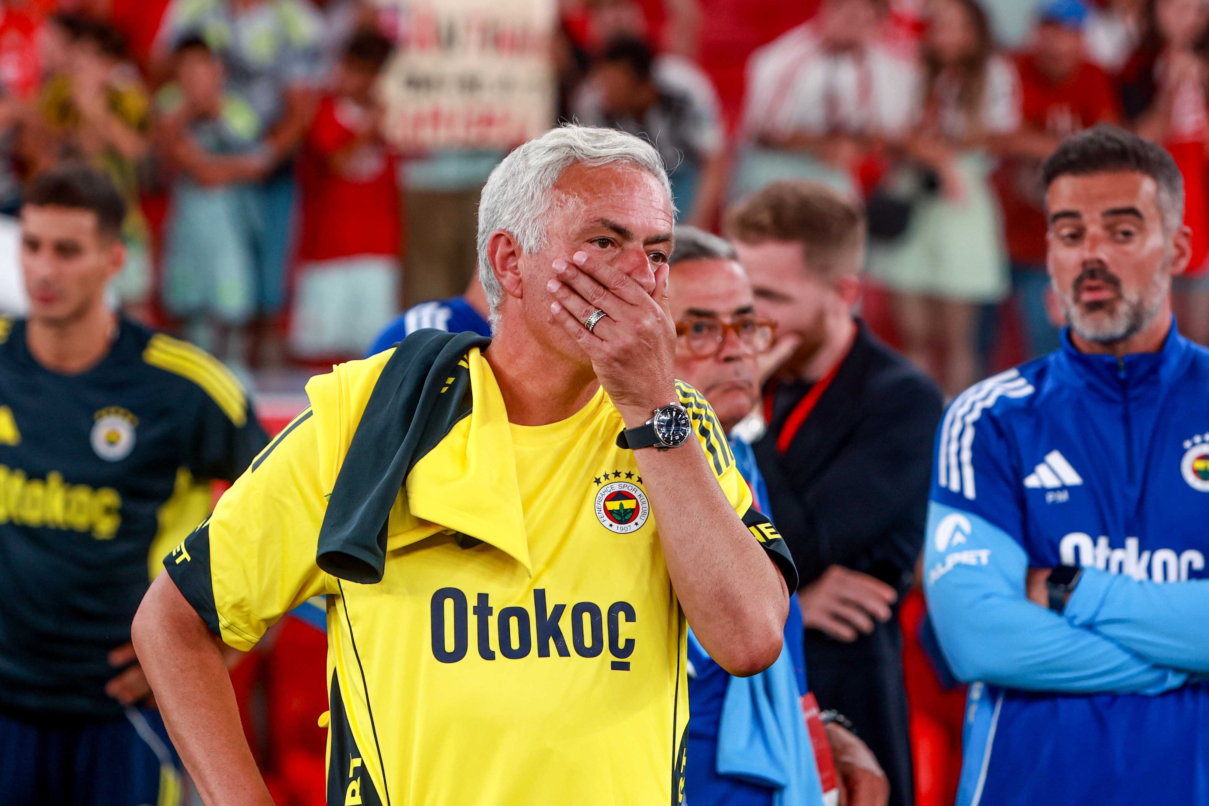 Ancak yardımcı hakem, bayrağını kaldırarak Youssef En-Nesyri'nin ofsaytta olduğunu işaret etti. Pozisyonun Video Yardımcı Hakem (VAR) tarafından incelendiği dakikalarda Fenerbahçe Teknik Direktörü Jose Mourinho, pozisyonun ofsayt olmadığını işaret ederek sevincine devam etti.