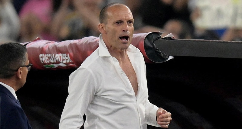 Maçın 90+5. dakikasında bir pozisyonda hakeme sert tepkisinden ötürü Allegri, doğrudan kırmızı kart görmüştü. Kırmızı kart gören İtalyan teknik adam, ceket ve kravatını saha kenarında çıkartıp yere atarak soyunma odasına gitmişti.