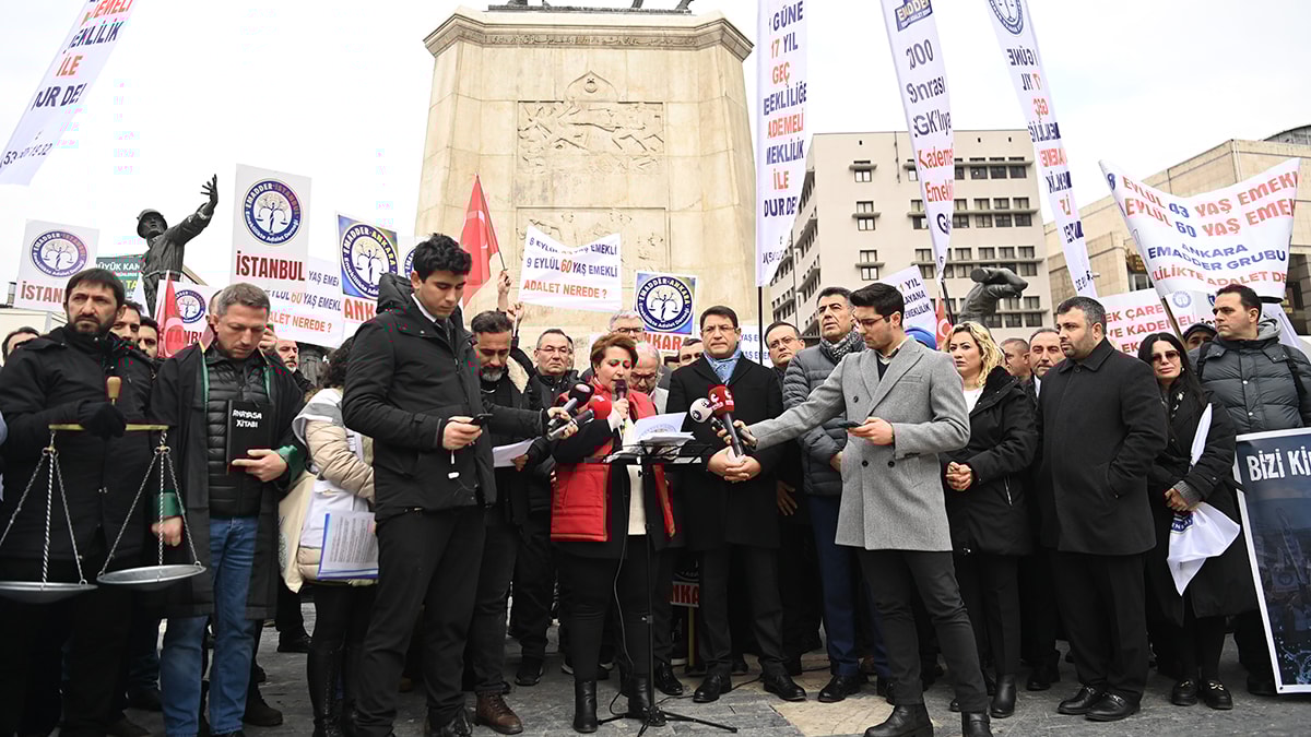 Kademeli emeklilik talebi ile Ulus Meydanı’nda toplanan EMADDER üyeleri, haksızlığa karşı kademeli emekliliğin yasalaşmasını istedi. EMADDER adına açıklamalarda bulunan Genel Başkanı Mihriban Uğurlu, “7438 sayılı EYT yasası çıktı, ancak EYT düzenlemesinin ardından yeni bir adaletsizlik doğdu. 09-09.09.1999 ve sonrası işe girenler 1 gün 1 ay 1 yıl işe geç girmenin bedelini tam 17 ile 20 yıl kaybederek ödüyor” dedi ve bunun hiçbir mantıkla, hiçbir hukuk normuyla, hiçbir vicdanla açıklanamadığını söyledi. Uğurlu şunları kaydetti: