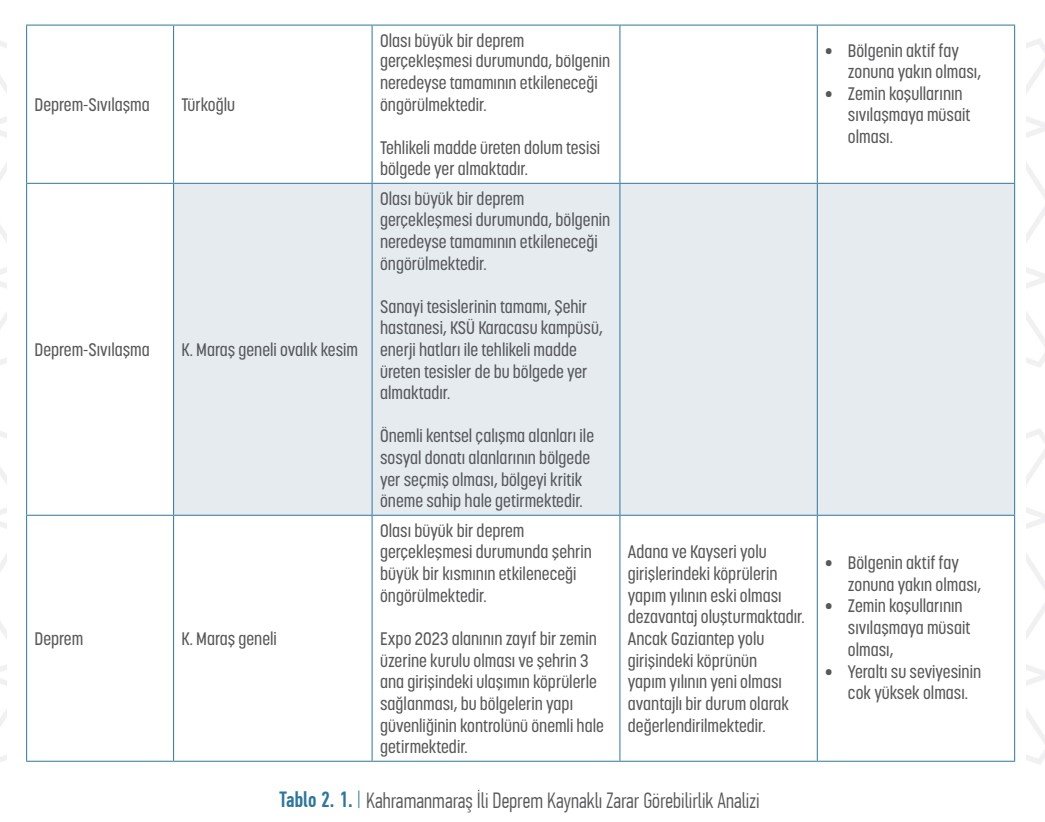 Oysa ki, Afet ve Acil Durum Yönetimi Başkanlığı'nın (AFAD) 2020 tarihli Kahramanmaraş İl Afet Risk Azaltma Planı (İRAP) raporunda kentte olası bir deprem ve sonrasında yaşanacaklar tek tek anlatılmış.
