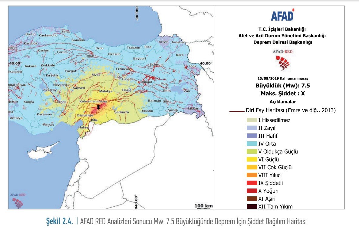 AFAD'ın raporunda "Kahramanmaraş'ta 7.5 büyüklüğünde bir deprem senaryosu" kullanıldı ve kentin bu depremden nasıl etkileneceği bölge bölge analiz edildi.