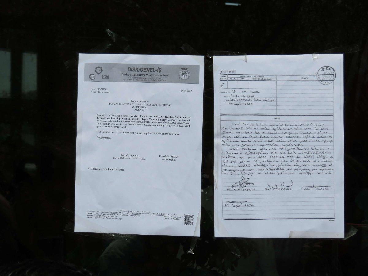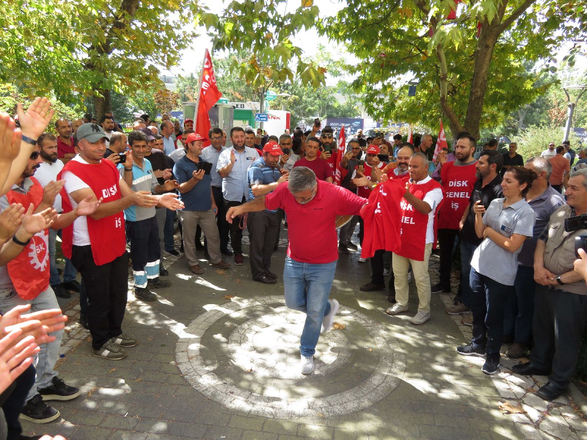 Murat Aydoğan, buraya grev kararını asmaya geldiklerini belirterek "Greve hazırlanırken aynı zamanda görüşmelere de açık olduğumuzun altını önemle çizmek isteriz. Zaten önemli olan grev süreci başlamadan taleplerimizi masada kabul ettirmek. Ama bu emeğimizi, mesleki yeterliklerimizin hakkını masada bırakacağımız anlamına da gelmiyor. Şimdi buraya grev sürecini başlatacak ilanımızı asıyoruz. Bugünden sonra her üye arkadaşım, iş yerlerimizde ilmek ilmek grevi örgütlemeli ve mücadeleden uzak durmamalıdır." diye konuştu.