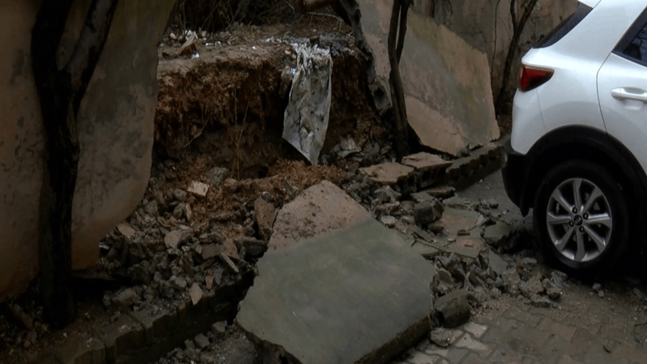İhbar üzerine olay yerine itfaiye ekipleri sevk edildi. Ekiplerin çalışmasıyla çöken kaldırılırken otoparka güvenlik şeridi çekildi. Otomobilde maddi hasar oluştu.
