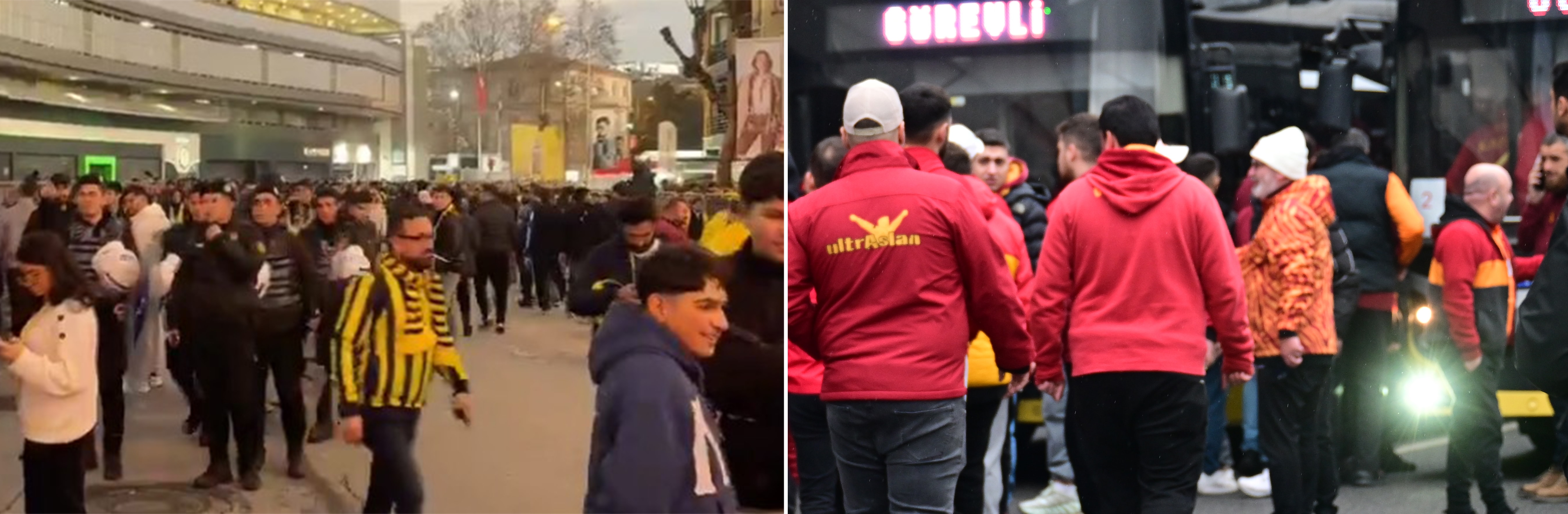Derbi öncesinde stadyum etrafında toplanan sarı-lacivertli taraftarlar, maç saatini beklemeye geçti. Tezahüratlarda bulunan ve meşaleler yakan taraftarlar, kısa bir süre sonra stadyumdaki yerini alacak.