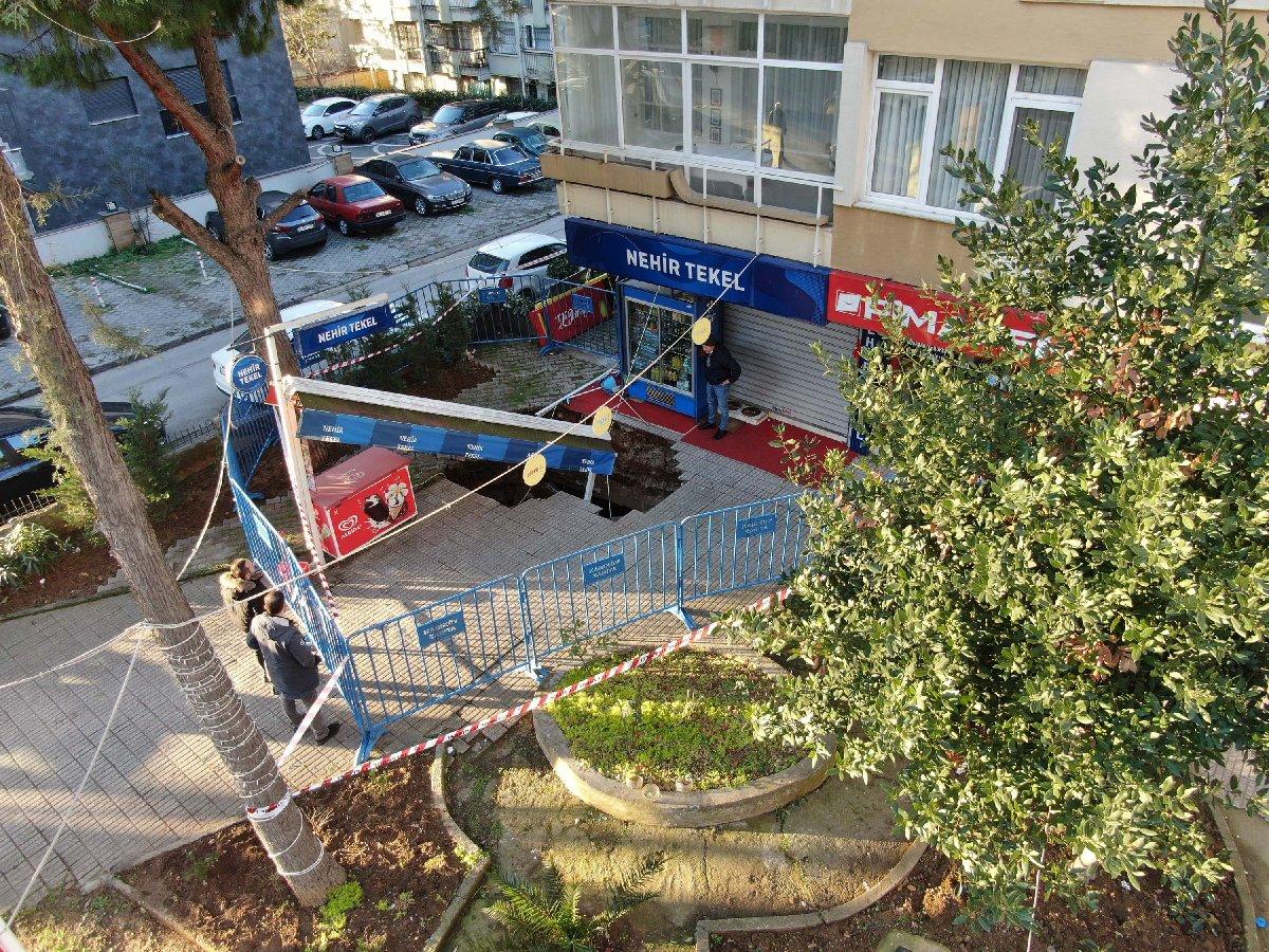 Çökme nedeniyle çevrede kısa süreli panik yaşandı. İhbar üzerine olay yerine itfaiye, polis ve sağlık ekipleri sevk edildi. İş yerine ait 2 dolap çukura düşerken olayda ölen ya da yaralanan olmadı.
