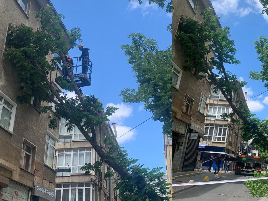 Kadıköy'de fırtına nedeniyle ağaç devrildi. Yan yatan ve bir apartmana çarpan ağaç kesilerek kaldırıldı. O anlar, semt sakinleri tarafından Sözcü Whatsapp İhbar Hattı'na ulaştırıldı.