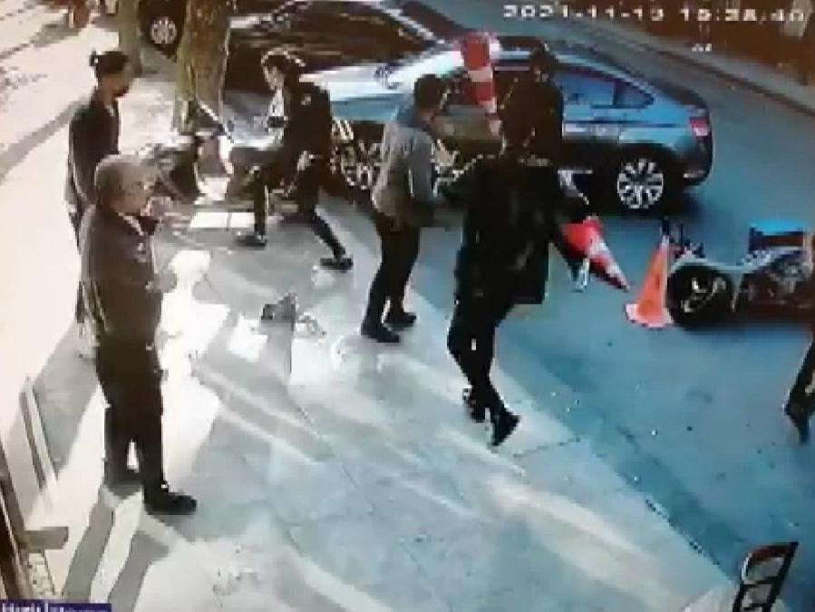 Lokanta çalışanlarının dükkandan aldığı döner bıçağıyla kardeşlere saldırdığı, kardeşlerin de trafik dubalarıyla saldırarak karşılık vermeye çalıştığı anlar güvenlik kamerasına saniye saniye yansıdı.  DHA