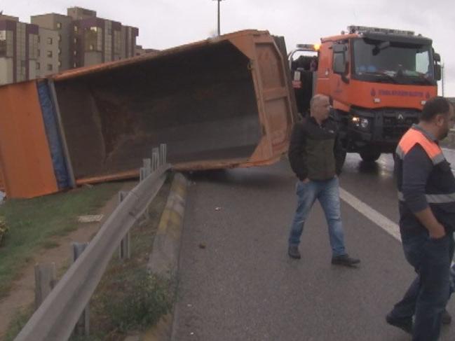 Kadıköy D-100 Karayolu bağlantı yolunda hafriyat kamyonu devrildi. Şans eseri kazada yaralı ve can kaybı bulunmazken kamyonu kaldırmak için vinç istendi. Kaza saat 12.30 sıralarında Kadıköy D-100 Karayolu Kozyatağı mevkii bağlantı yolunda meydana geldi. Fatih Karabacak yönetimindeki 34 FN 3306 plakalı hafriyat kamyonu, direksiyon hâkimiyetini kaybederek devrildi. Kamyon şoförü kazadan yara almadan kurtulurken devrilen kamyonu kaldırmak için vinç istendi. Kazayı gören Enes Köşken “Karşıdan geliyorduk biz diğer taraftan bir anda devrilmesiyle kendimizi zor attık. Yaralı yok Allah'a şükür. Burası kalabalık değildi kalabalık olsaydı sıkıntıydı" dedi.