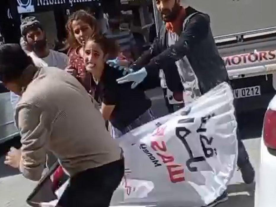 Kadının saldırıya geçmesini fırsat bilen yakınları da manava saldırarak dövmeye başladı. Saldırı karşısında karşı koyamayan manav, zor anlar yaşadı. Çevredeki vatandaşların ise olayı film izler gibi izlediği görüldü. Olay kısa bir süre sonra sona erirken kavga anları bir cep telefonu kamerasına saniye saniye yansıdı.