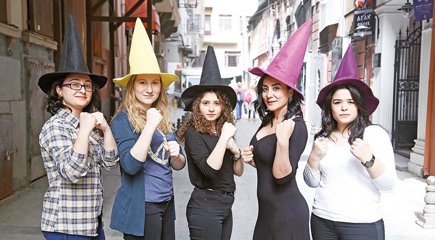 Ö.K.: Kendimize bir isim ararken kadınların mücadele tarihini inceledik. Ortaçağda, eczacı, bilimle uğraşan, döneminin doktorları olan kadınlar kilise monarşisinin baskıcı ve gerici erkek egemen baskılarına direndiği için cadılıkla suçlanıp yakılmışlardır. Sonrasında cadı kelimesi daha çok beğenilmeyen, laf dinlemeyen bütün kadınlar için kullanılmaya başlandı. Biz de boyun eğmeyen ve özgürlüğüne tutkun kadınlar olarak ismimizi cadı koyalım dedik. Daha sonra ‘Bizler yakamadığınız cadıların torunlarıyız’ ana sloganlarımızdan biri oldu.