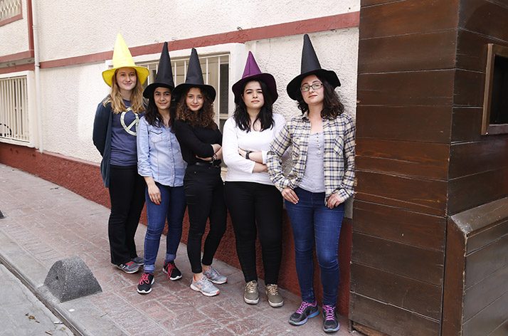 Meral Çınar: Eskişehir’den, Ankara’dan, Samsun’dan, Adana’dan genç kadınlar olarak bir araya geldik ve 2012 yılında Kampüs Cadıları’nı kurduk. “Dört yıl boyunca üniversite yaşamımız devam edecek” dedik ve bu süreçte bir kadının kendini özgür bir şekilde ifade edebilmesi için neler yapabileceğimizi düşündük. Üniversitedeki eğitimin cinsiyetçiliği ve erkek arkadaşlarımızın ailelerinden gelen feodal egemen kültürü üniversiteye taşımaları nedeniyle maruz kaldığımız sorunlar üzerine çalışmalar yaptık.