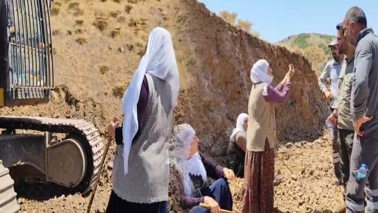 Bundan bir yıl önce köyün civarında etütlerde bulunan Dimin Maden arama şirketi, geçtiğimiz günlerde kepçelerle gelerek sondaj arama faaliyeti için çalışmalara başlamış. 8 hanelik köyde yaşayan kadınlar ellerinde sopalarla iş makinalarının önünü kesmişler. Ve onbir yaşındaki torunları Veysel de, kepçeler gidene kadar görüntü alarak tarihe geçecek anları yakalamış.