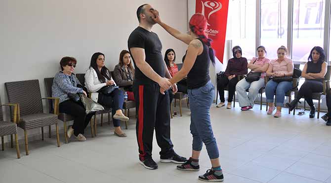 İlk eğitim ise 10 Mayıs Anneler Günü’nde yapıldı. 3 gün boyunca süren eğitimlerde kadınlara, haklarını öğrenebilmeleri için 6284 sayılı Kadına ve Aile İçi Şiddete Yönelik Yasa anlatıldı. Asayiş Şube Müdürlüğü Kadına Yönelik Şiddet Birimi’nden gelen polisler kadınlara haklarını ve şiddet durumunda izlemeleri gereken yasal yolları öğretti.