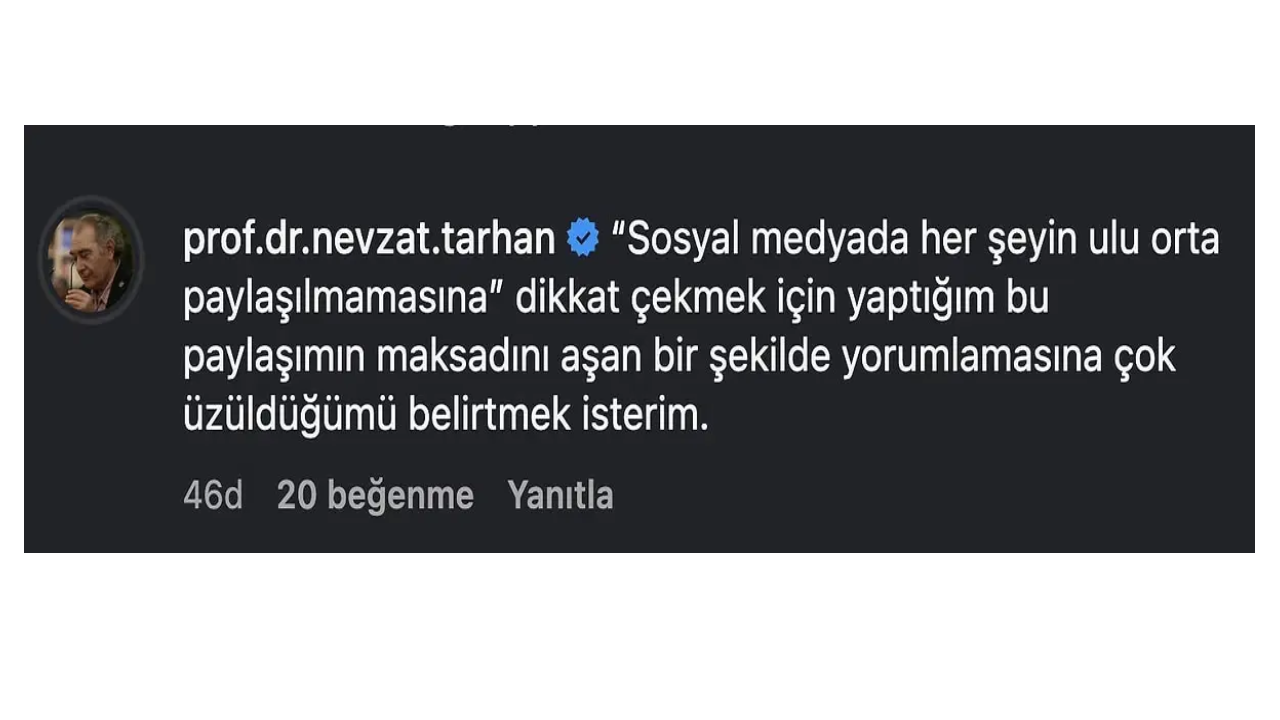 Gelen tepkilerin ardından Tarhan, paylaşımının maksadını aştığını belirterek, şu sözleri söyledi: