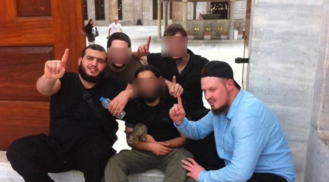 Mustafa K.'nın El Aziz Kasabası'nda, IŞİD'in kestiği kafalarla verdiği bu poz dünyayı şok etmişti. Almanya'da sabıkalı bir paket dağıtıcısı olan Mustafa K., çevresine topladığı 7 gençle IŞİD'e katıldı. Mustafa K. (solda), Alman basınında da yayınlanan, İstanbul Fatih Camii'nde bu fotoğrafı çektirdi. Sonra da Suriye'ye geçti.