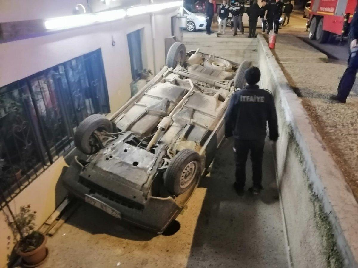 Araç düştüğü yerde ters dönerken, içinden sürücü ve iki kişi yara almadan çıktı. Kaza yapan otomobilden çıkan 3 kişi, aracı da bırakıp yaya olarak kaza yerini terk etti.