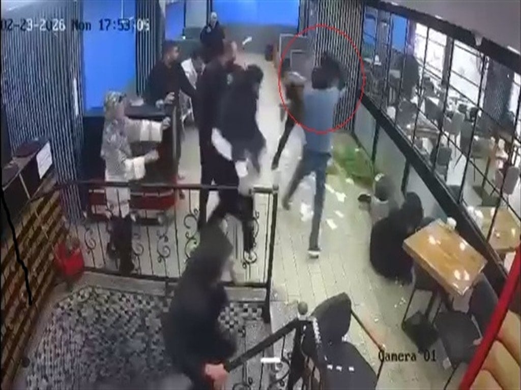 Şahıslar birbirlerine masa, sandalye ve iş yerindeki diğer eşyaları fırlatarak saldırdı. İş yerini savaş alanına çeviren grubu, kafedeki diğer müşteriler araya girerek güçlükle ayırdı. O anlar iş yerinin güvenlik kamerasına saniye saniye yansıdı.