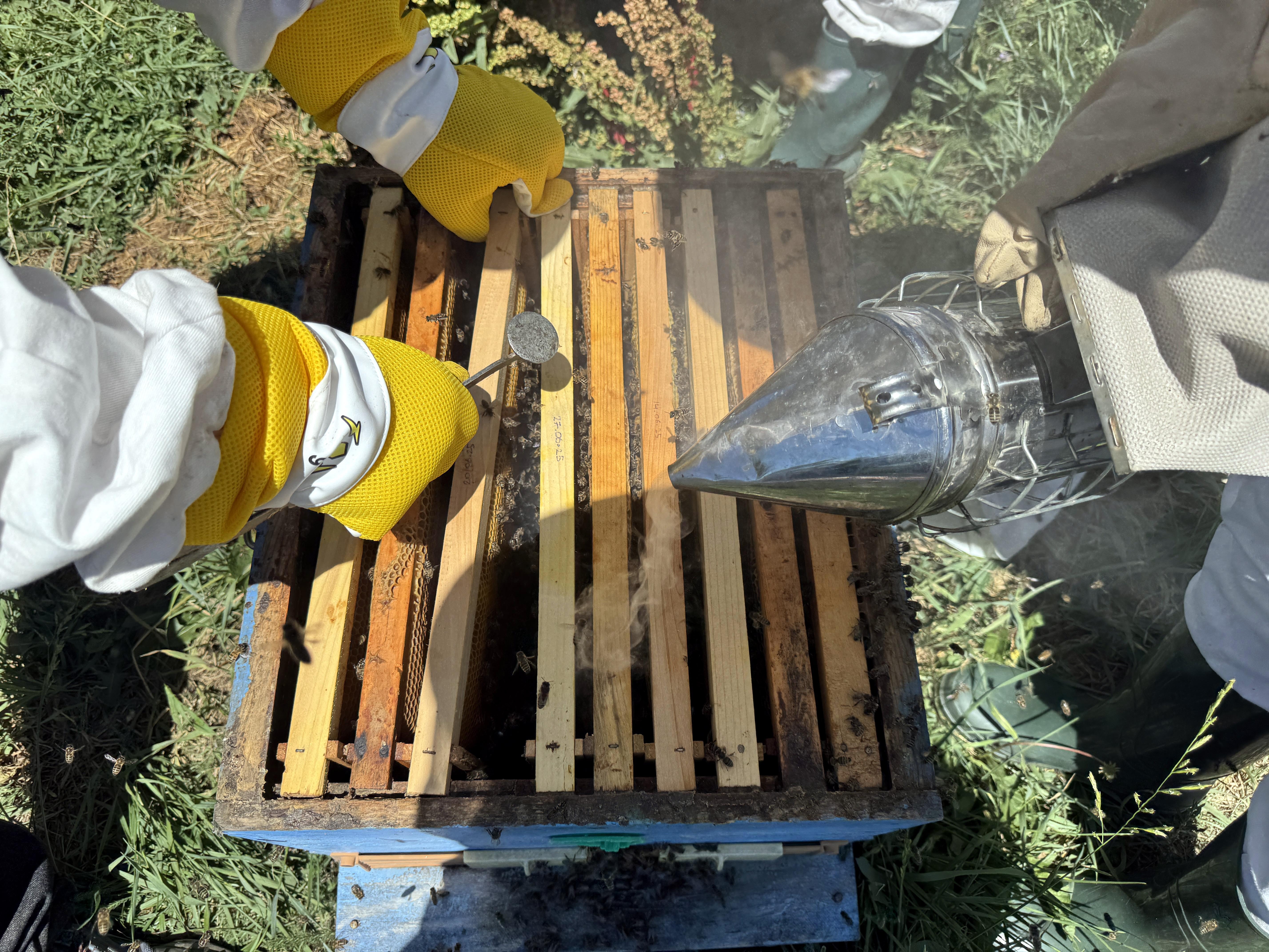 Bal süzüm sezonu için kolları sıvayan aile bireylerinin kovan mesaisi, baba Necdet Bilgin'in kovanlara duman vermesiyle başladı.