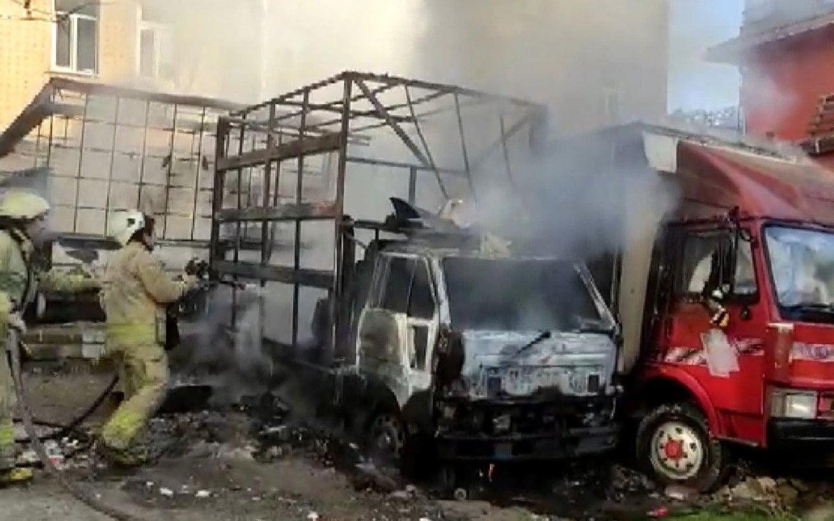 Alevler kısa sürede büyüyerek, arkasındaki yine kağıt yüklü iki kamyonete sıçradı. Çevredekilerin ihbarı üzerine olay yerine itfaiye polis ekipleri sevk edildi.