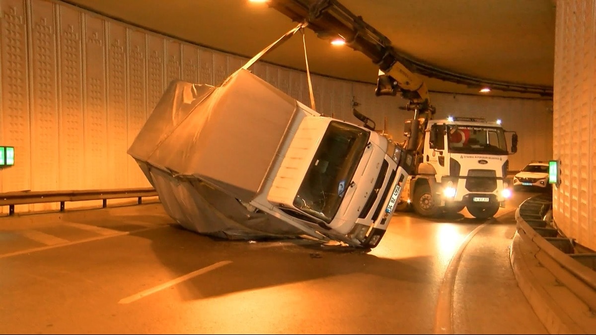 Çağlayan Tüneli Kağıthane çıkışında saat 13.00 sıralarında Aziz Aktan'ın kullandığı malzeme yüklü kamyon, tünel içerisindeki virajda yan yattı. Sürücü kazadan yara almadan kurtulurken Çağlayan Tüneli Kağıthane çıkışı trafiğe kapandı.