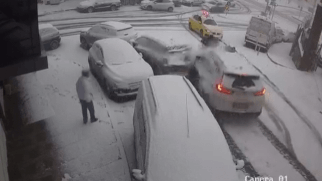 Olay, 1 Ocak Perşembe günü saat 13.45 sıralarında Talatpaşa Mahallesi’nde meydana geldi. Edinilen bilgiye göre kar yağışı sonrası sürücü Eren Seza T., 34 KTZ 342 plakalı aracıyla yokuştan inmek istedi. Ancak kaymaya başlayan araç, önce yolun başında duran 34 HYU 038 plakalı motokurye Emre Onur A.'ya çarptı. Ardından da park halindeki 34 HSB 939 ve 34 KTZ 342 plakalı araçlara çarpmasının ardından, Hakkı K.’nin kullandığı 34 TDN 41 plakalı taksiye ve park halindeki 34 LEV 345 plakalı araçlara çarparak durabildi. Olay anı güvenlik kamerasına yansıdı.