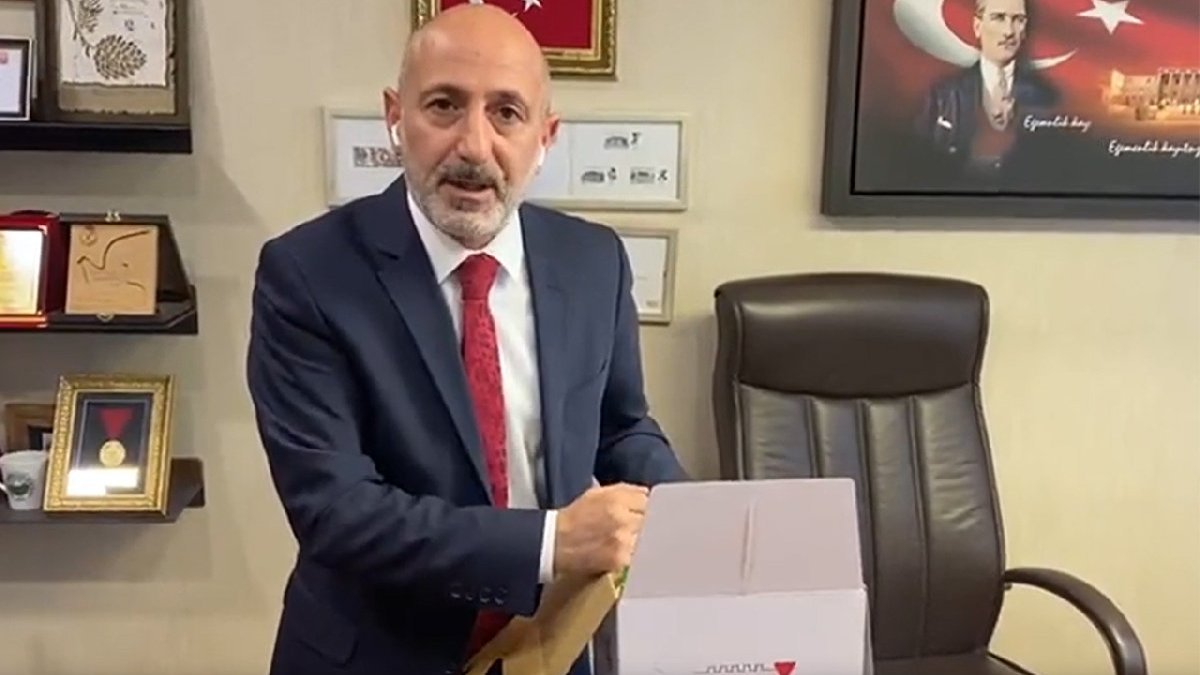 *Deprem şehri orası, depremzede bir belediye orası. Sen depremzedenin rızkını, hakkını niye milletvekillerine gönderiyorsun. Milletvekillerinin bu koliye, gıdaya mı ihtiyacı var? Ben bunu iade ediyorum, CHP milletvekilleri de iade edecekler.