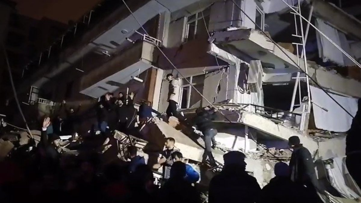 Kahramanmaraş'ta meydana gelen depremin ardından Diyarbakır'ın Yenişehir ilçesinde 8 katlı bina yıkıldı.