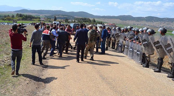 Kent merkezine 20 kilometre uzaklıkta bulunan Sivricehöyük Mahallesi'ndeki 37 hektarlık araziye kurulmaya başlanan 25 bin 40 kişilik konteyner kentine karşı çıkan bölge sakinleri, kurdukları çadırda bekleyişlerini sürdürüyor. Şantiye alanına yürümek isteyen gruba polis biber gazı ile müdahale etti.