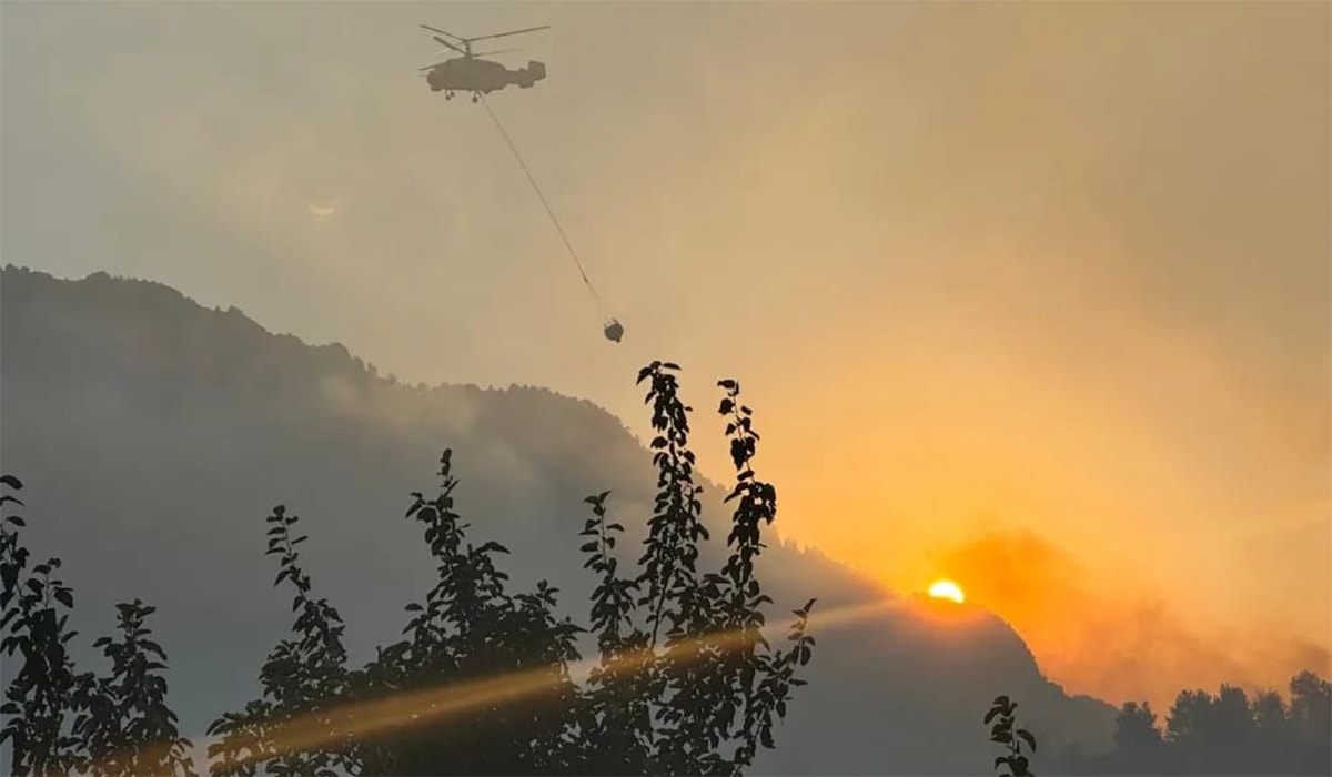 200 personel, 60 araçla yangını söndürmek için başlatılan çalışmalara, 6 helikopter ile 2 uçak da havadan destek verdi.