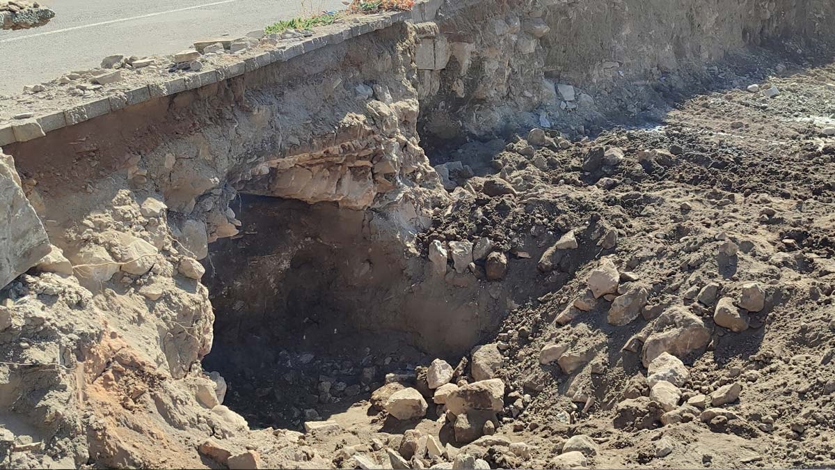 İhbar üzerine bölgede inceleme ve kazı yapan uzman ekip, tarihi olduğu değerlendirilen kemer kalıntısı ve tünel girişine ulaştı.