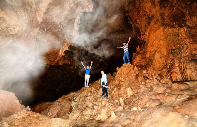 "700 metrelik pasif tırmanışla ulaşılan mağarada girişten hemen sonra başlayan ana galerinin tavanını ve duvarlarını süsleyen sarkıtların olağanüstü güzelliğini mağara zeminindeki dikitler tamamlıyor."