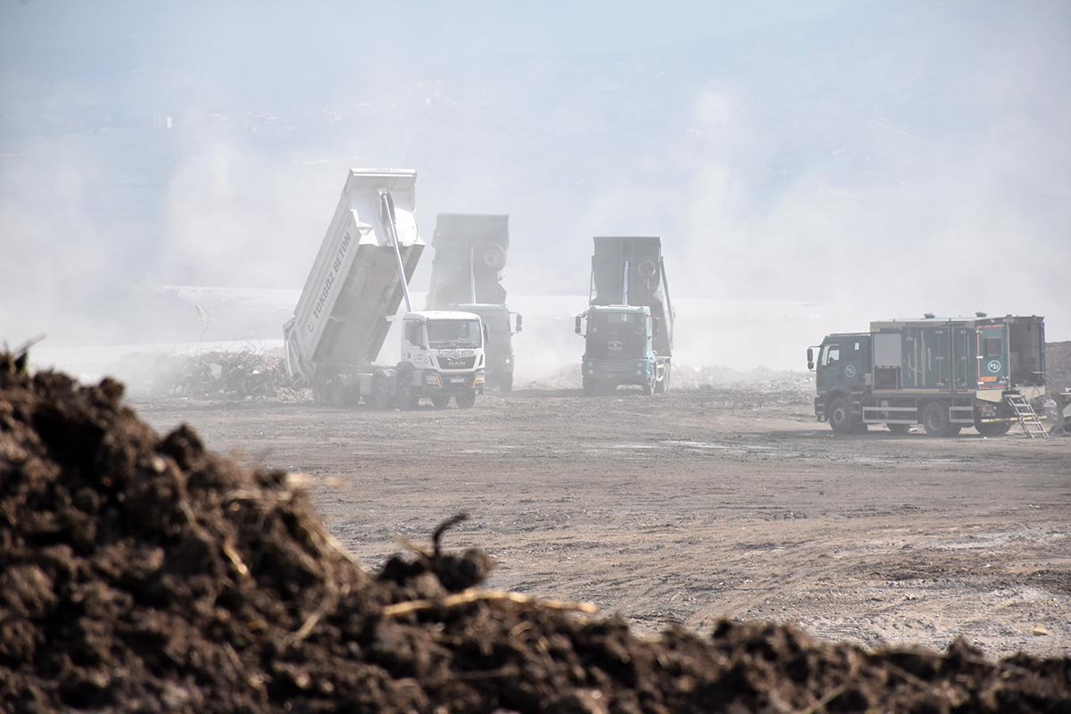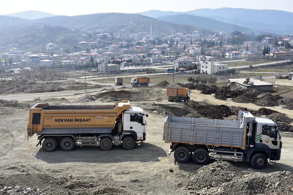 Molozlar kamyonlarla belirlenen hafriyat sahalarına taşınıyor. Güvelik güçlerinin de bulunduğu alanda sahadaki diğer iş makineleri tarafından düzeltme çalışması gerçekleştiriliyor.