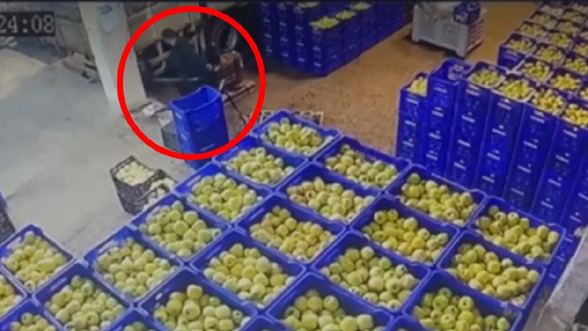 Görüntülerde iş yerinde bulunan elma dolu kasaların sarsılarak yıkıldığı ve depremi hisseden esnafın kaçtığı görülüyor.