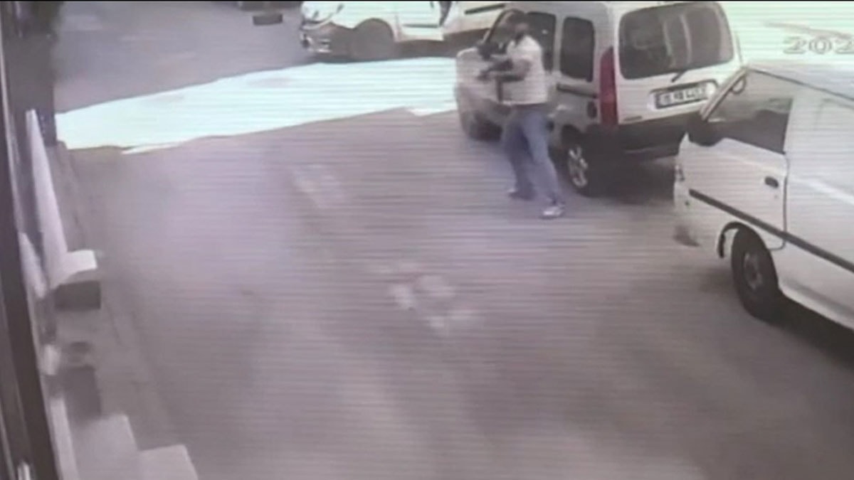 Kayıtlarda saldırganın Menekşe Caddesi'nde hafif ticari araçtan inerek otomatik tüfekle iş yerini tarayıp kaçtığı, ardından 11 Eylül Bulvarı'ndaki kırmızı ışıkta bekleyen otomobilin önüne kırıp sürücüyü indirdikten sonra yanındaki kadınla uzaklaştığı görülüyor.