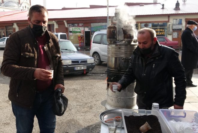 Semaverlerde çay demleyen işletmeciler hem pandemi kurallarına uyuyor hem de soğuk kış günlerinde kıtlama çayı seven Erzurumluları çaysız bırakmıyor.