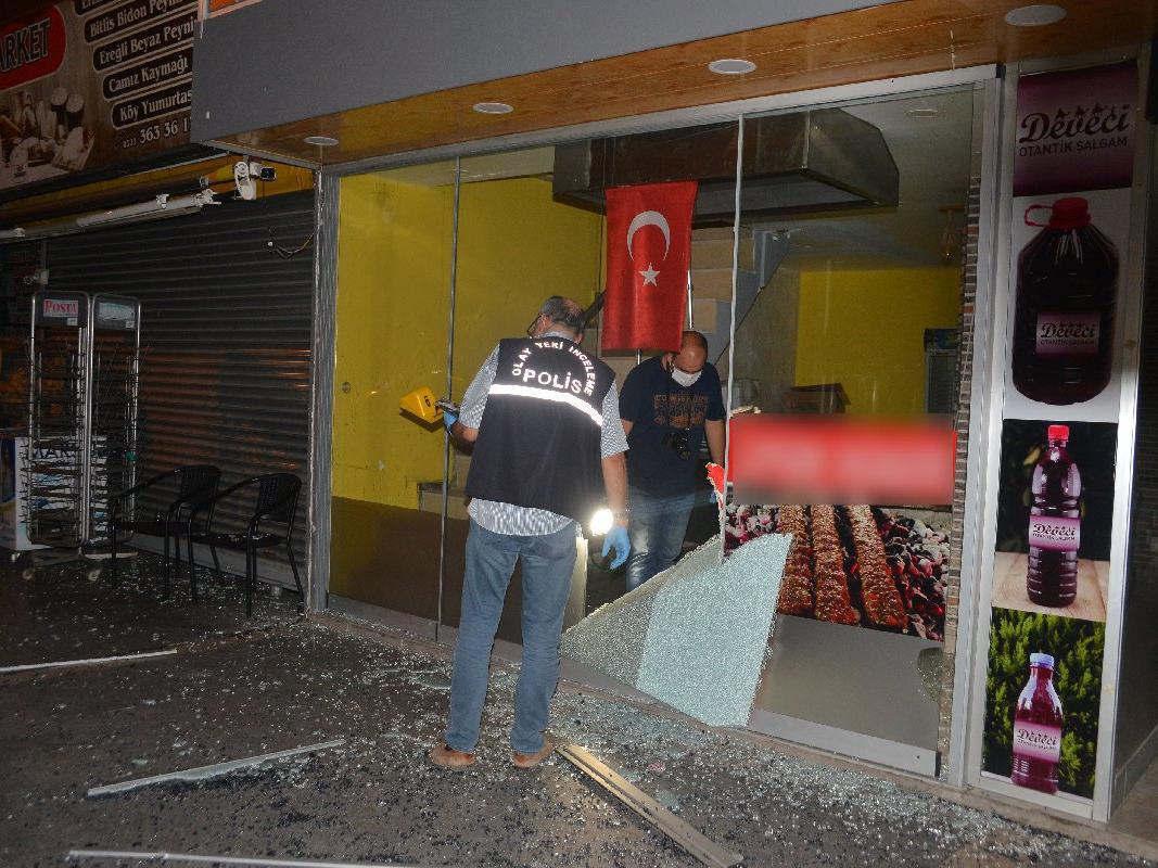 Hafif ticari araçla kapalı olan dürümcünün öne gelen bir grup şüpheli, kalaşnikof piyade tüfeği ve tabancayla iş yerine kurşun yağdırıp, geldikleri araçla olay yerinden kaçtı. İhbar üzerine olay yerine sevk edilen polis ekibi, tüfeğe ait 6, tabancaya ait de 4 boş kovana rastladı.