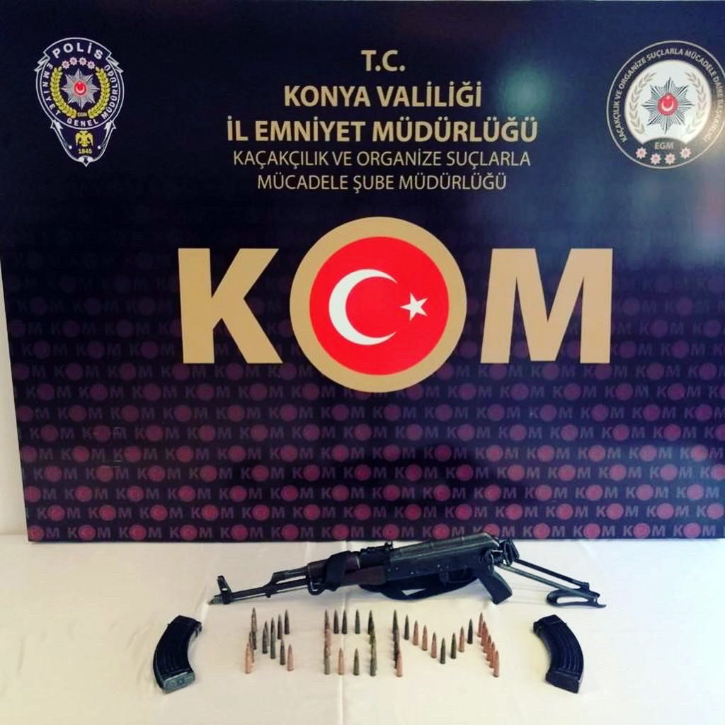 Konya Emniyet Müdürlüğü Kaçakçılık ve Organize Suçlarla Mücadele Şubesi, merkez Meram ilçesinde Alparslan Ç.'nin evine operasyon düzenledi. Polis, evde yaptığı aramalarda kalaşnikof, bu silaha ait 54 dolu mermi ve 2 şarjör ele geçirdi.