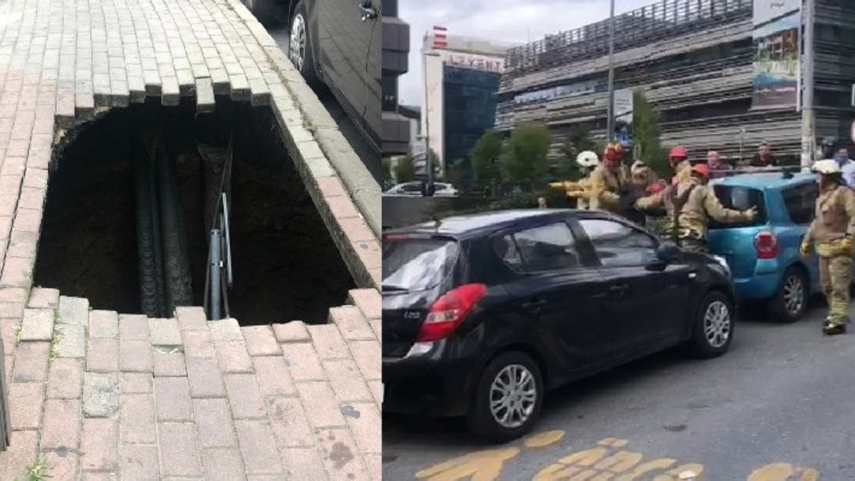 Şişli'de kaldırımın çökmesi sonucu oluşan çukura düşen kadın, itfaiye tarafından kurtarıldı.