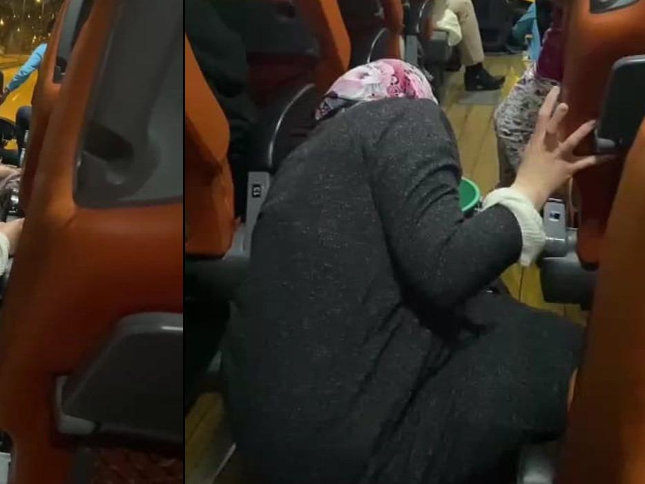 Kendisine yapılan baskı nedeniyle kadın utana sıkıla yerleri temizlerken, bu baskıcı uygulama otobüsteki diğer yolcuların da tepkisine neden oldu.
